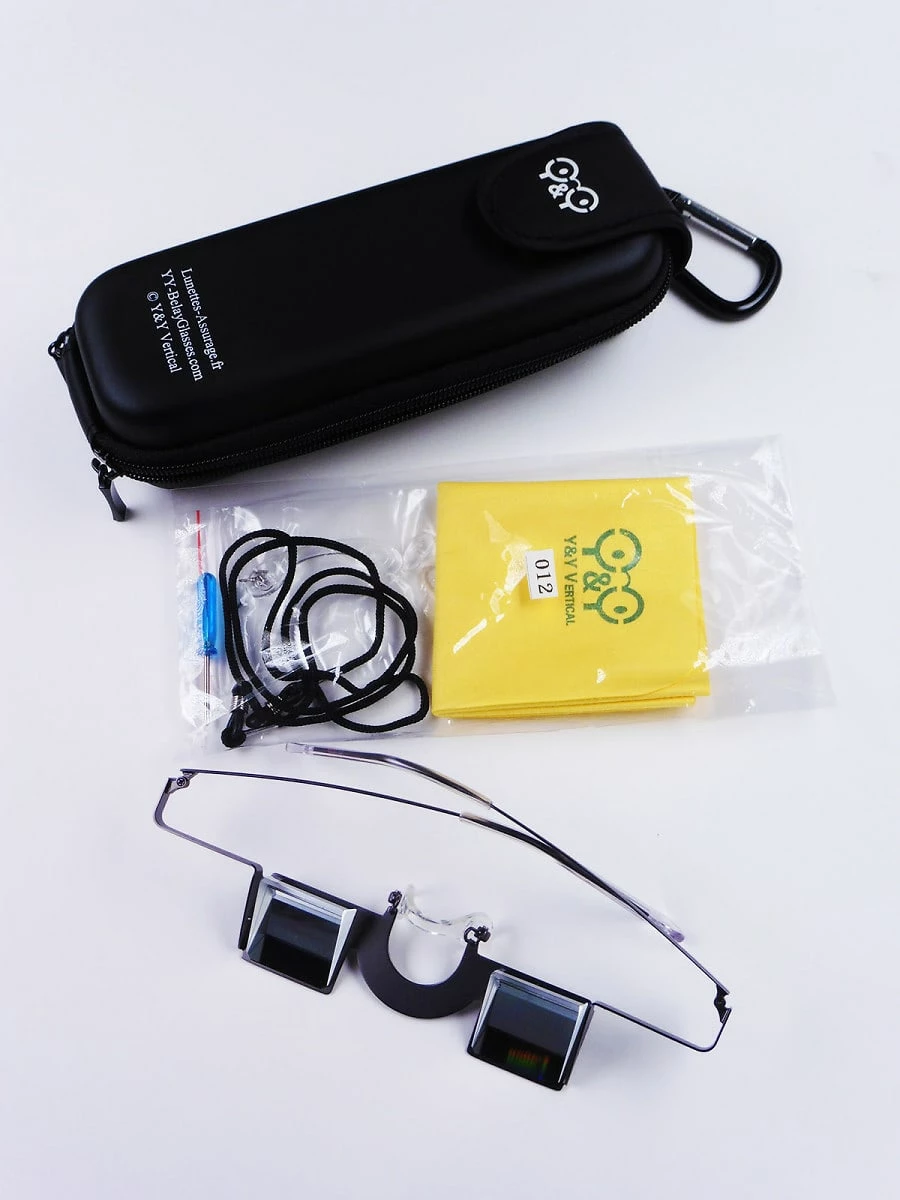 Y & Y sikringsbriller gir deg muligheten til å kunne sikre klatrepartneren din uten å la det gå ut over nakken din. Prismekontruksjonen gjøre det mulig å stå med hodet i normalpositur samtidig som du har full oversikt over bevegelsene til klatreren i veggen.